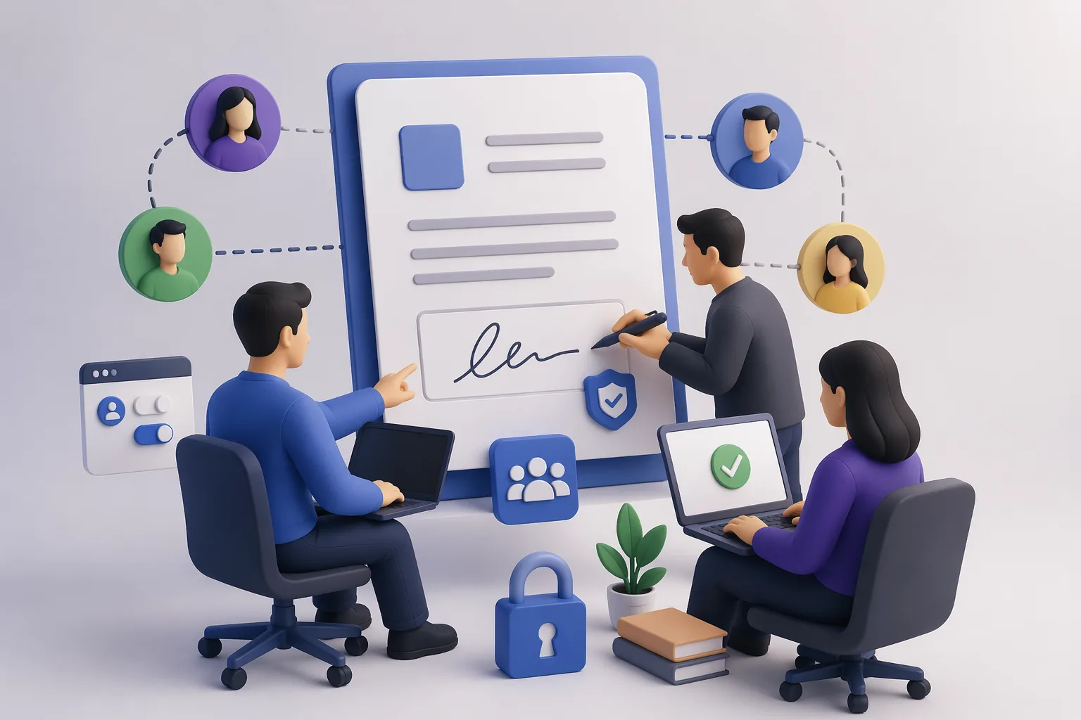 TL;DR (30 seconds): The moment you go from one person sending documents to a team, e-signature stops being about "the signing experience" and becomes about roles, permissions, templates, audit trails, and who can speak for the company. This guide walks through the seven decisions every growing team faces when setting up multi-user e-signature — and shows a reference workflow that works from a three-person startup to a hundred-person operations team without rewrites.