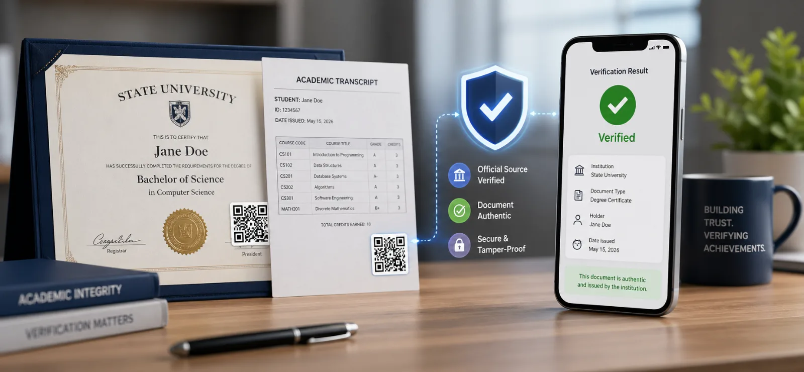 It is not a substitute for accreditation checks. QR verification proves the document is a true copy of what the institution issued. It does not prove the institution is itself legitimate. (Worth saying out loud: a QR-verified certificate from an unaccredited diploma mill is still worthless.)