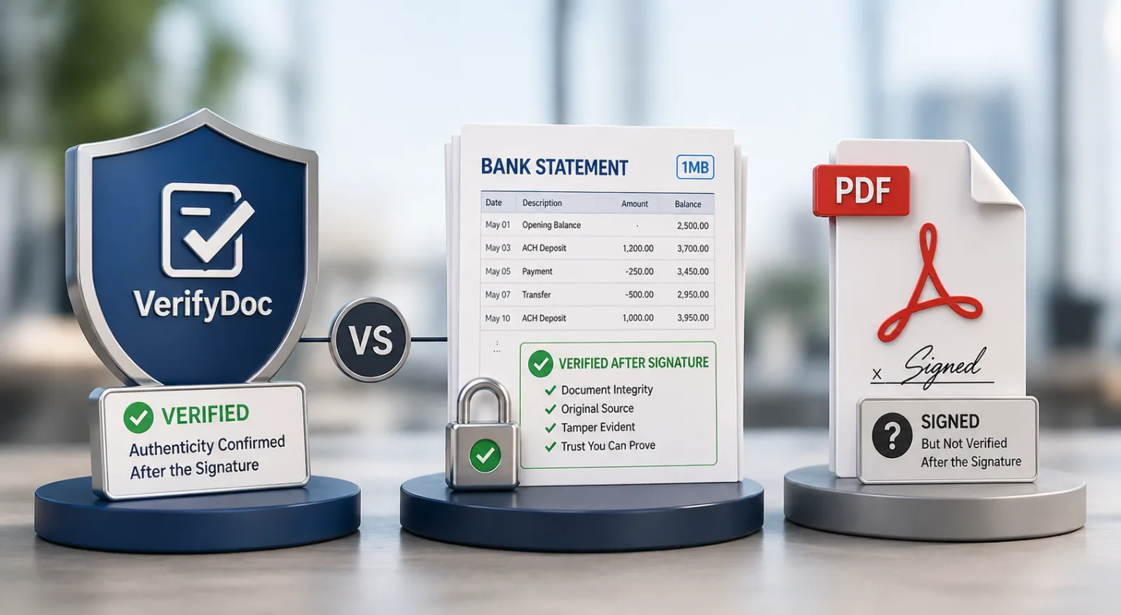 This article walks through what each tool is genuinely best at, where they overlap, where they don't, and how to choose between them with a decision matrix at the end. The short version: Adobe Acrobat Sign is the right answer for teams whose work lives inside the PDF — heavy editing, complex forms, AATL-grade digital signatures, deep Microsoft 365 integration. VerifyDoc is the right answer for teams who care most about what happens to a document after it has been signed and sent — proof of authenticity, post-delivery verification, QR-on-document trust that travels with the file even onto paper.