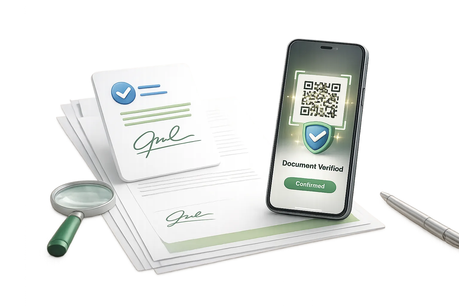 Generate the verification record, place the QR into the document, and let the recipient confirm authenticity instantly on a hosted verification page.
